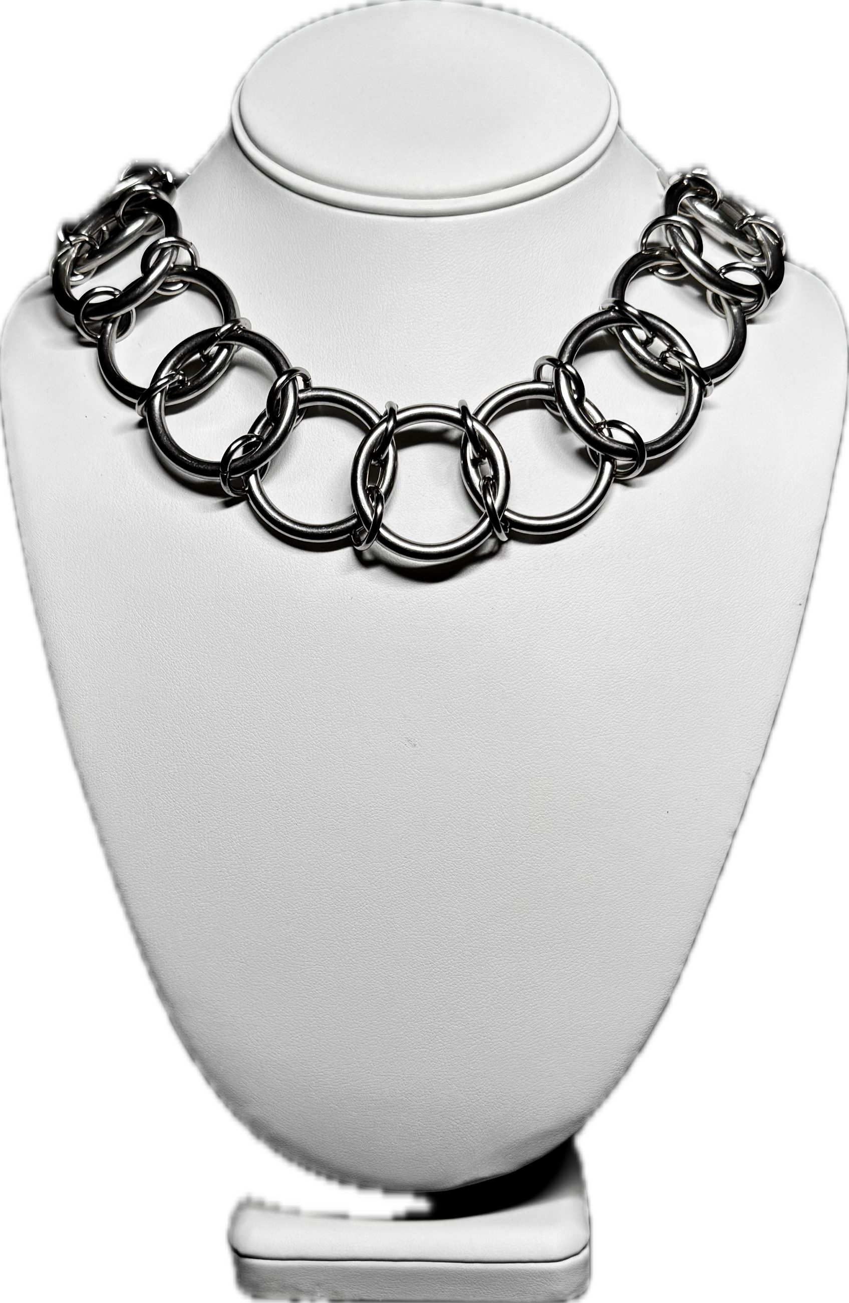 Slip into something that bites back. CHOKEHOLD is not just a necklace — it’s a power move. Built from thick, high-polish stainless steel and composed of bold interlocking ring links, this piece wraps the neck like a statement, not an accessory. It’s heavy. It’s hot. It’s meant to be seen.
