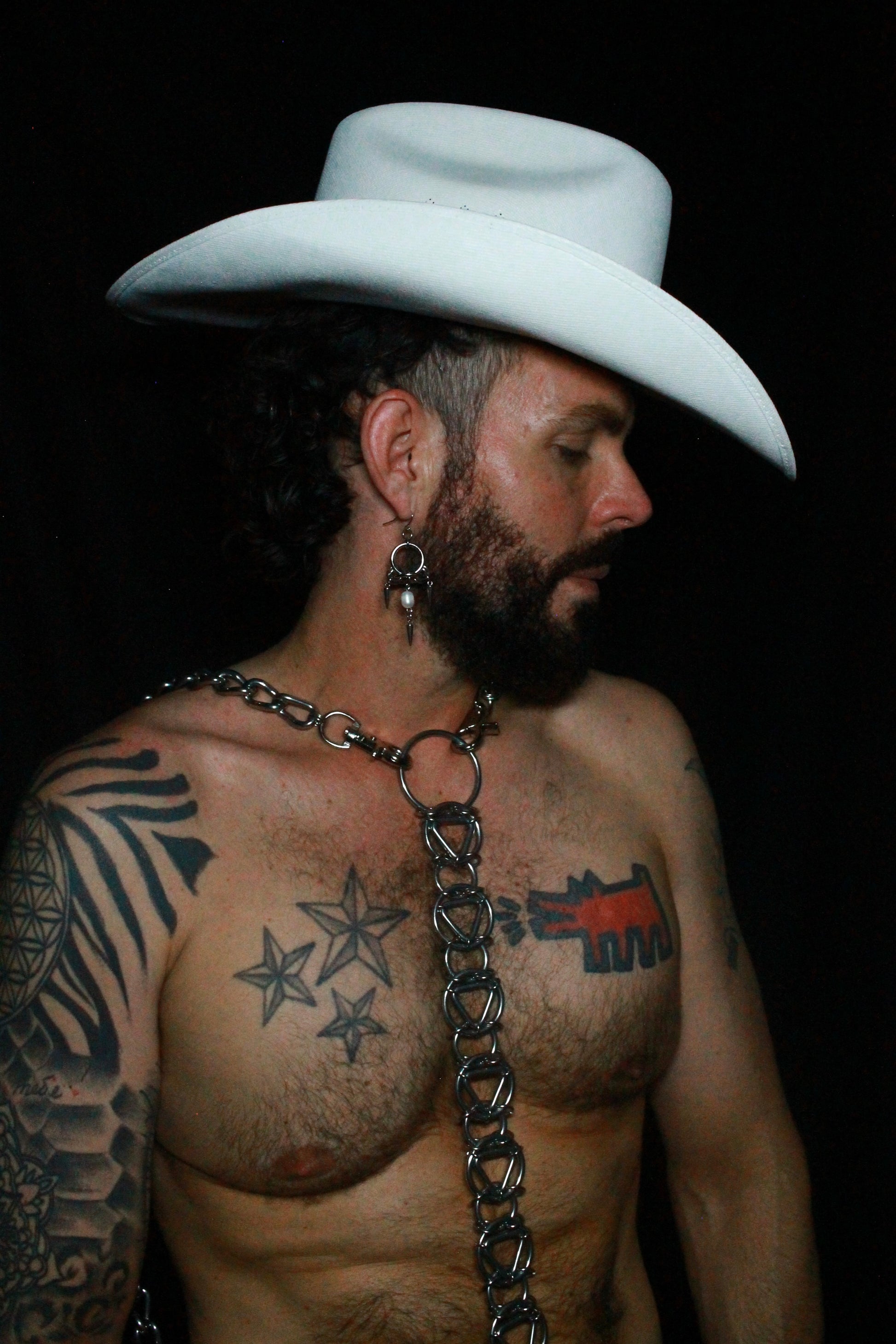 These statement earrings are designed to move with you, catching light and attention with every step. Worn solo, they bring sharp minimalism with a touch of elegance. Layered with other HUNG favorites, they transform into a maximalist expression of queer rebellion. Pair them with chains, cuffs, or chokers for a head-turning look that thrives on contrast. Whether you’re on the dance floor, at an art opening, or simply dressing for everyday power, the Fang Earrings adapt seamlessly — bold enough to command attention, yet refined enough to complement any outfit.